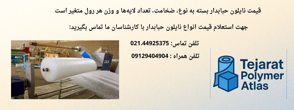 نایلون حبابدار یکی از پرکاربردترین ابزارهای محافظت از محصولات در صنایع مختلف به شمار می‌آید و نقش حیاتی در کاهش خسارت‌های فیزیکی و شکستگی کالاها دارد. خرید نایلون حبابدار با کیفیت بالا، امکان بسته‌بندی ایمن و استاندارد کالاها را فراهم می‌کند و از آسیب دیدن محصولات در طول حمل و نقل و انبارداری جلوگیری می‌کند. فروش نایلون حبابدار در انواع مختلف و ضخامت‌های متنوع، این امکان را برای صنایع فراهم می‌کند که محصولی متناسب با نیاز خود انتخاب کنند و از محافظت کامل آن اطمینان حاصل کنند. اطلاع از قیمت نایلون حبابدار به مشتریان کمک می‌کند تا بودجه‌بندی دقیق داشته باشند و هزینه‌های اضافی را به حداقل برسانند.